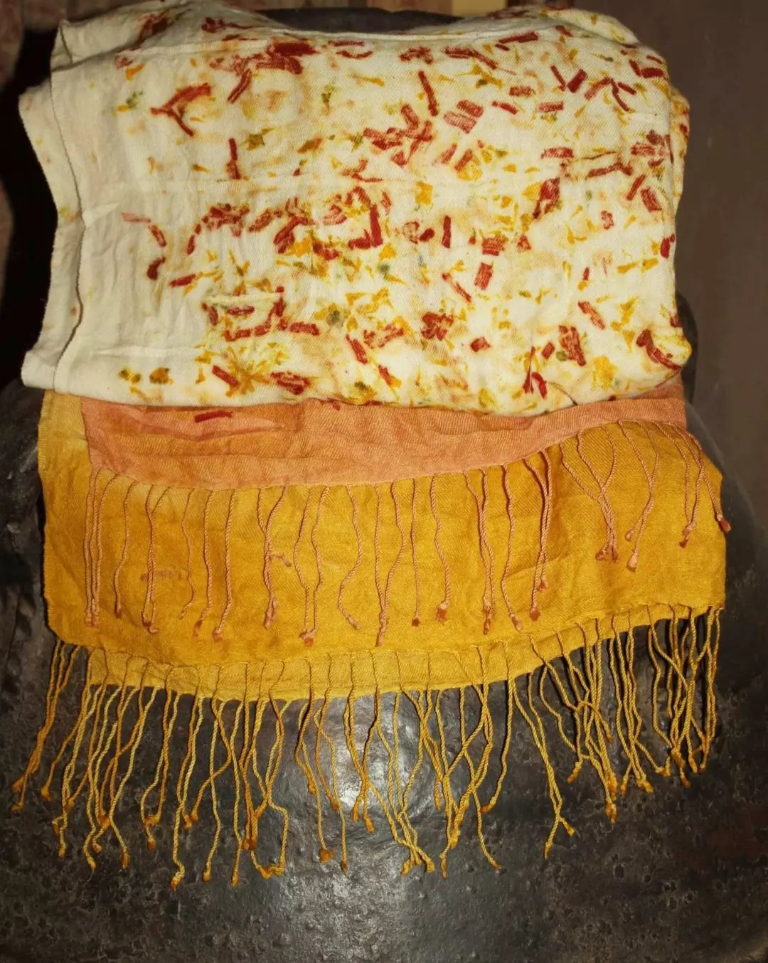 Hand dyed using home grown botanicals, locally foraged finds & traditional natural dye extracts.