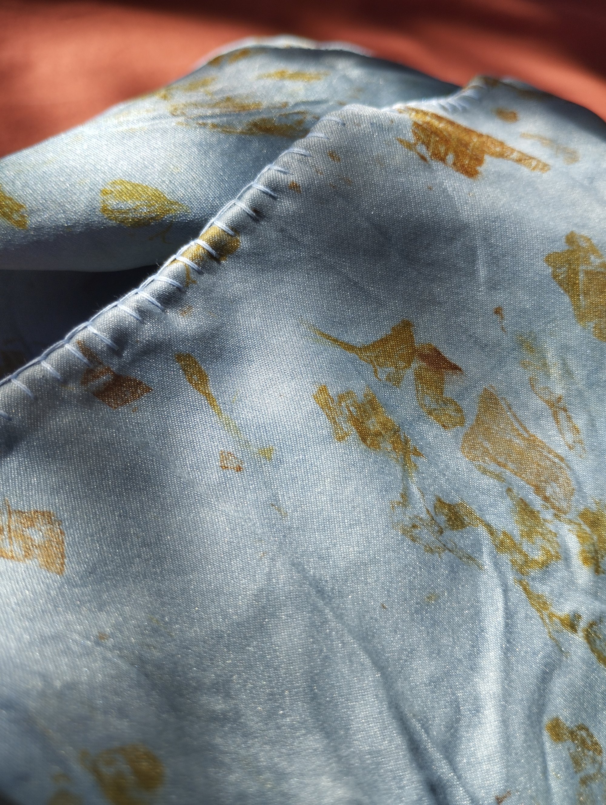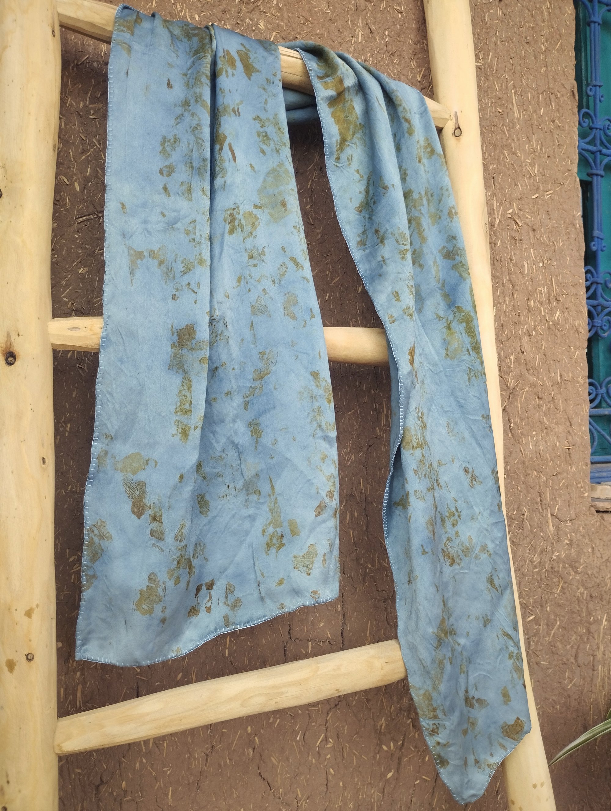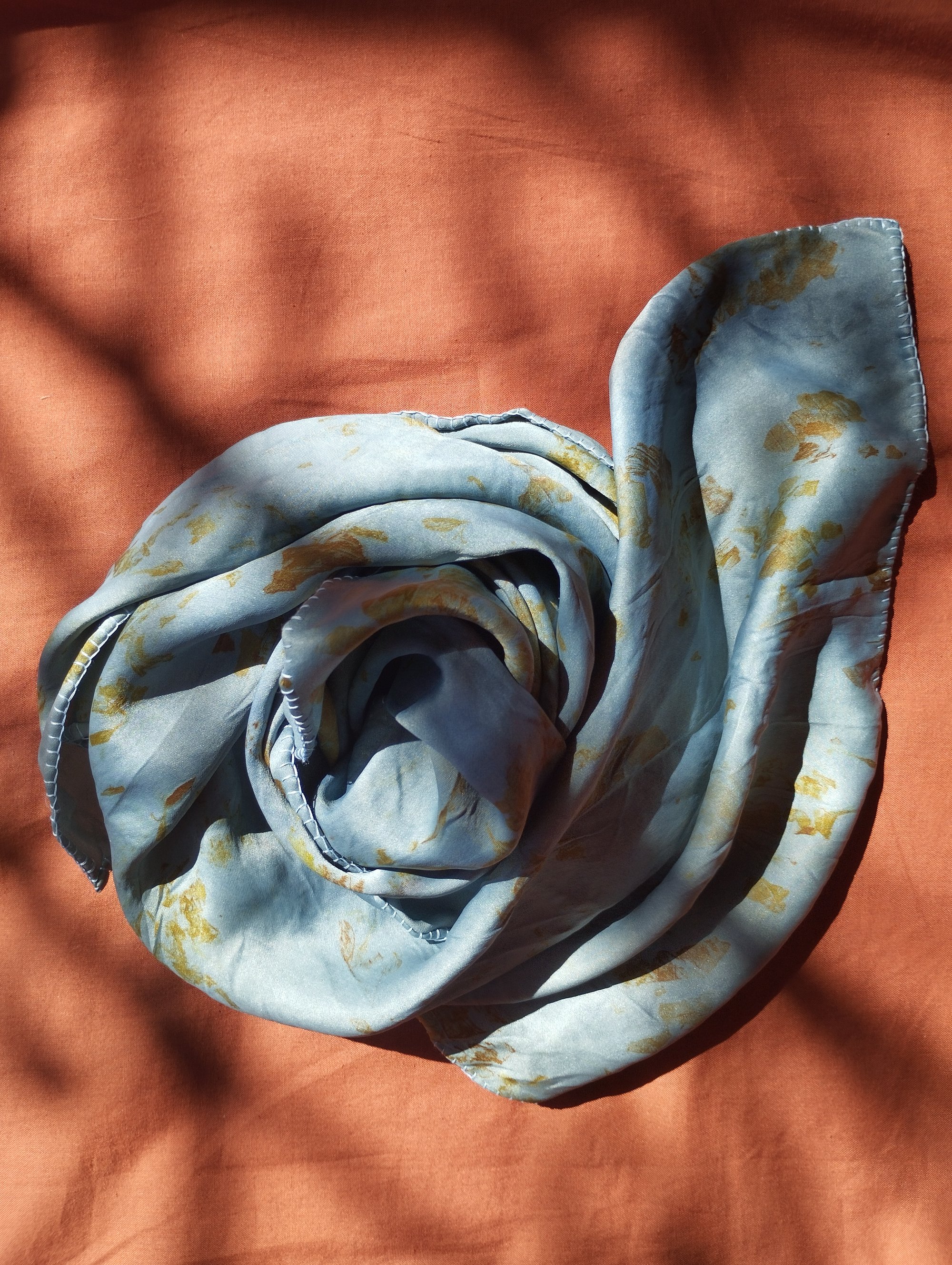 100 % Silk , Hand dyed using home grown botanicals, locally foraged finds & traditional natural dye extracts.