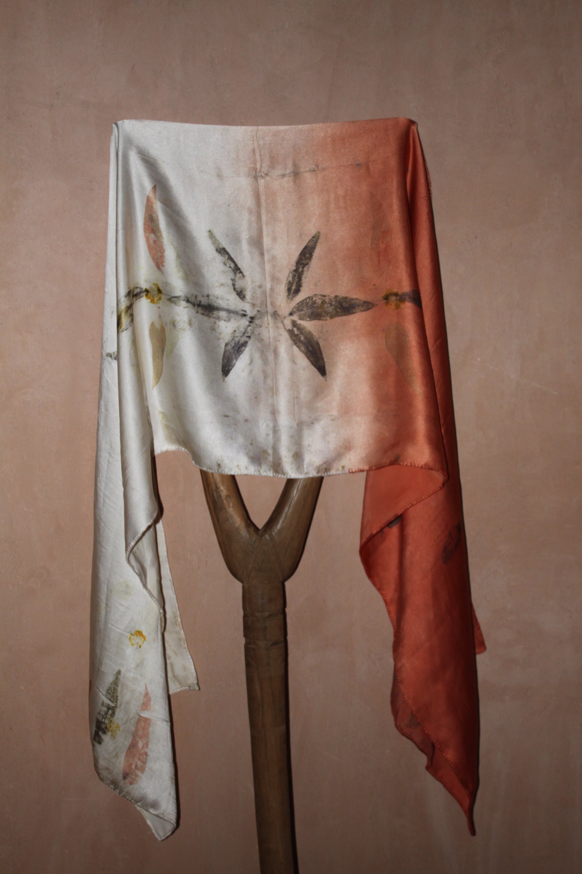 •Naturally dyed with Madder root & Eco printed with Eucalyptus leaves